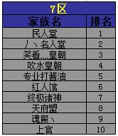 闯荡江湖,缔造传奇,您都需要强大的家族做为后盾,给予您无限的支持!或者您是天生的领袖 ,想要自立门户,打造强横势力,共同铸就斗破苍穹!陪游《斗破苍穹2》7区“有家就有一切,家族排行大赛”已经落下帷幕,恭喜以下家族进入排名前十: