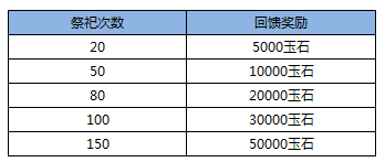 1. 祭祀送宝石:当天祭祀次数满150次。即可获得祭祀达人礼包,内含10000颗1级宝石