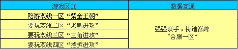 1月13日凌晨2点-9点,陪游双线一区与要玩双线二、三、四区实行数据互通,玩家们只用选择原先所在区登录进入游戏即可,无需其他任何操作,轻松享受此次数据互通带来的畅快体验。