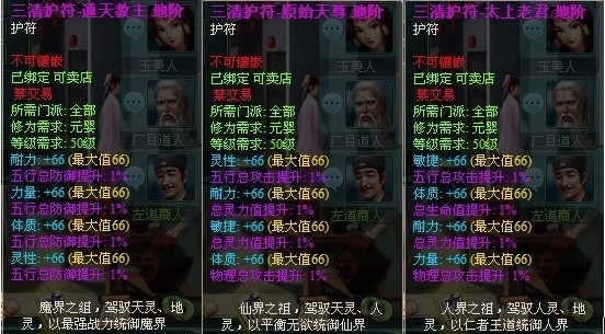 缘灵护符*1+缘敏护符*1+缘耐护符*1+土灵珠*10=三清护符-原始天尊