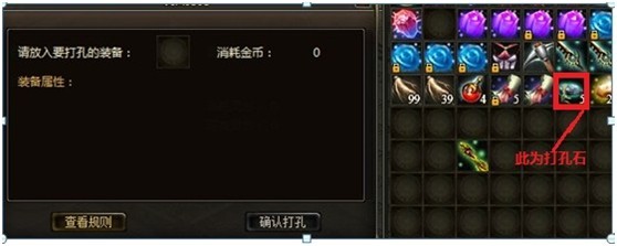 当背包中有打孔石时,可以双击其而打开打孔面板。