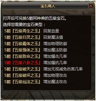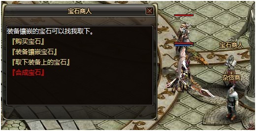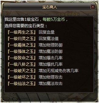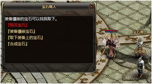 春之城新增NPC:宝石商人(坐标77:47),可以在宝石商人处进行购买宝石、装备打孔、宝石合成、镶嵌宝石和取下宝石等操作