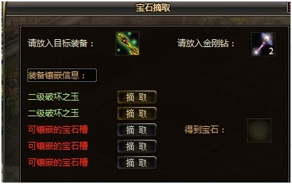 打开后,放入镶嵌宝石的装备和金刚钻。点击摘取就可以了。