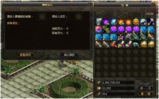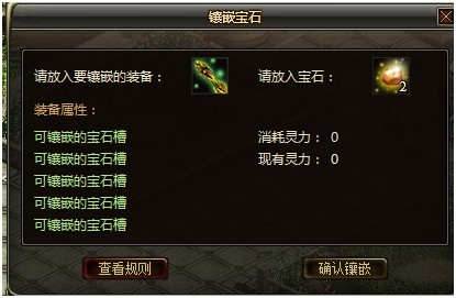 点击“装备镶嵌宝石”,会出现镶嵌宝石面板。