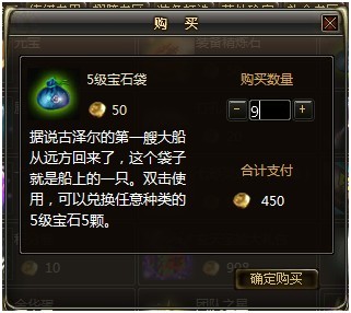 “确定购买”即可以得到“5级宝石袋”。