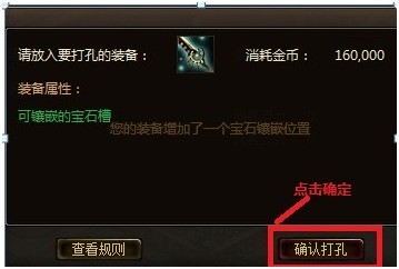 放入装备后点击确认打孔就可以了,最大打孔数为5个。这样就为我们的镶嵌打下了基础。