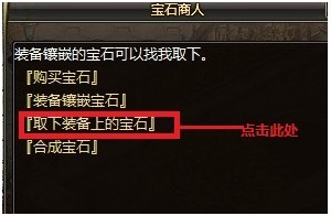 1.首先来到春之城的“宝石商人”处。需要购买宝石,装备镶嵌宝石,取下装备上的宝石,合成宝石的,要在“宝石商人”进行。首先我们需要宝石和有镶嵌孔的装备。