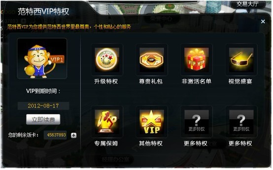 1、升级特权 VIP玩家将会获得更多人品、更多材料掉率