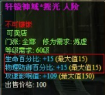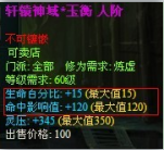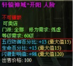 “轩辕神域”包括七种,每种除生命15%满外,另有一条满属性与一条 属性。(以下图片第三条属性为 ,仅供参考)