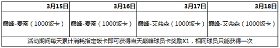 即日起凡在当天累计消耗达到指定饭卡的玩家即可获得“巅峰-麦迪,巅峰-艾弗森”7天使用权